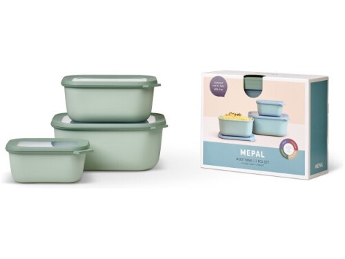 Mepal Cirqula Deep Rectangular Multi Bowl Set – 3‑Piece