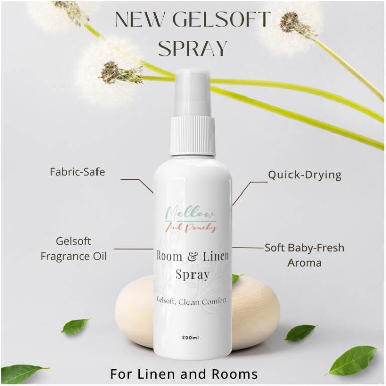 Room & Linen Spray – Gelsoft Scent Fabric-Safe & Quick-Drying | Mellow and Peachy