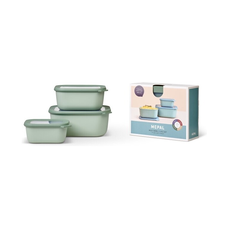 Mepal Cirqula Deep Rectangular Multi Bowl Set – 3‑Piece