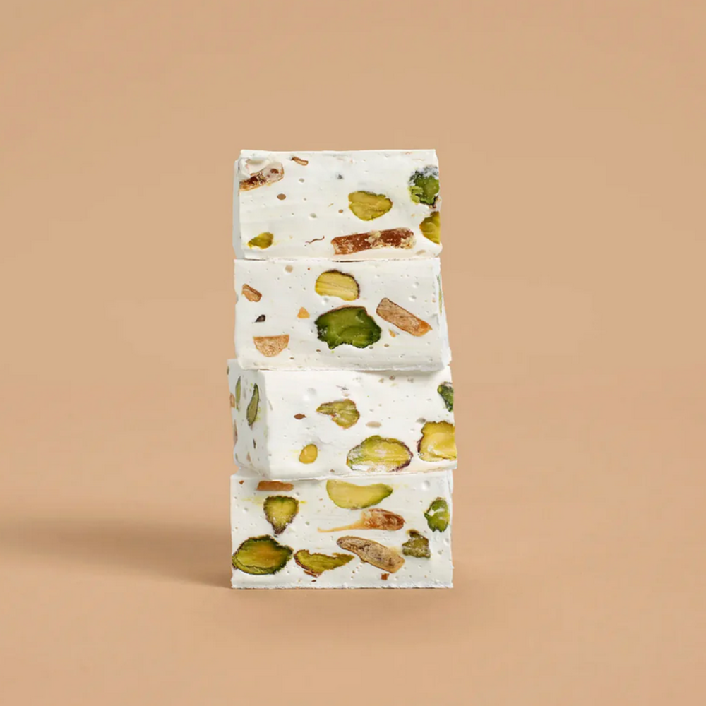 Experience the extraordinary flavour of 1701’s Salted Caramel Brittle & Pistachio Honey Nougat. Crafted with the finest quality ingredients and perfected through a signature recipe, this nougat offers a beautifully balanced combination of sweet honey, delicate pistachio, and a hint of salted caramel crunch. Each bite is smooth, indulgent, and thoughtfully made.