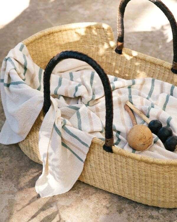 Combining handwoven comfort with a soft, natural colour, this baby blanket offers a gentle and reassuring place for little ones to rest. Whether in the nursery or accompanying families on days out, it is designed to become a favourite for both baby and parents.