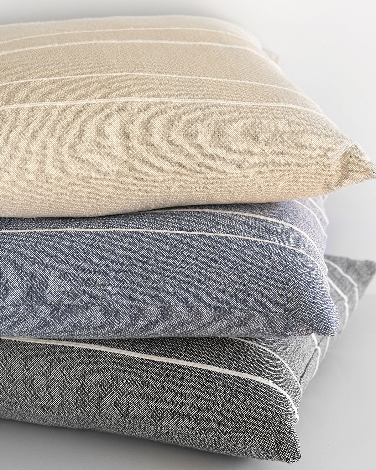A handwoven cotton cushion cover featuring textured natural lines on a coloured base. Crafted in Barrydale, South Africa by Perci or Erin, this versatile piece brings comfort and contemporary character to any living space