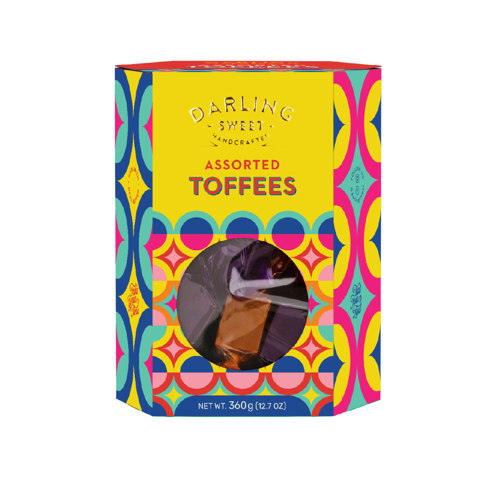 Discover a premium selection of handcrafted toffees from Darling Sweet. This 360g Assorted Toffees box brings together six of the brand’s most beloved flavours, each crafted with care to deliver a rich, nostalgic sweetness. Every unit contains six individually wrapped toffees, offering a delightful variety for gifting, sharing, or enjoying slowly at home.