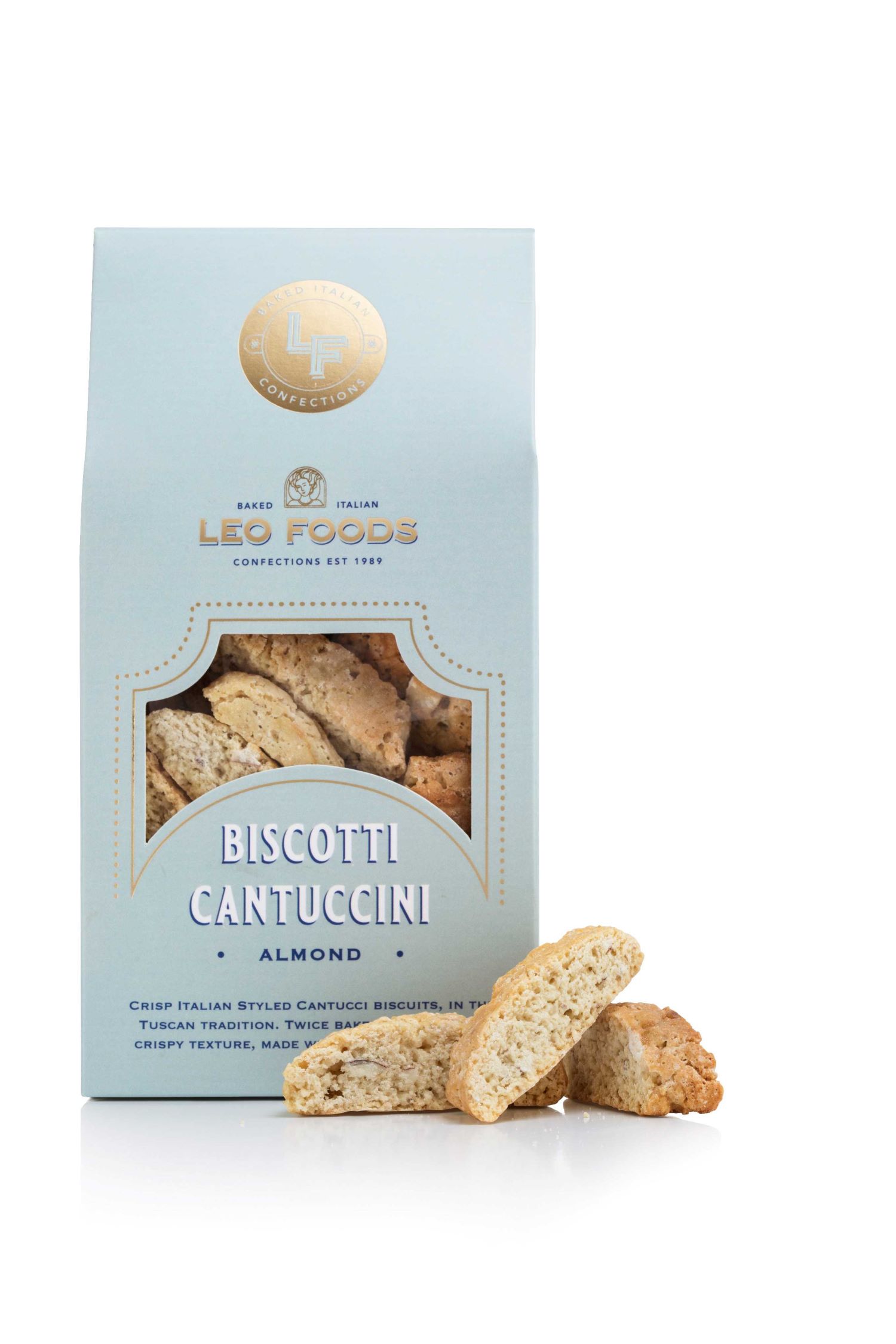 Crisp, Italian‑styled Cantucci biscuits crafted in the Tuscan tradition. These twice‑baked almond biscuits deliver a classic crunch and a subtly sweet flavour profile, ideal for pairing with coffee, tea, or dessert wines. Made by Leo Foods with care and authenticity.