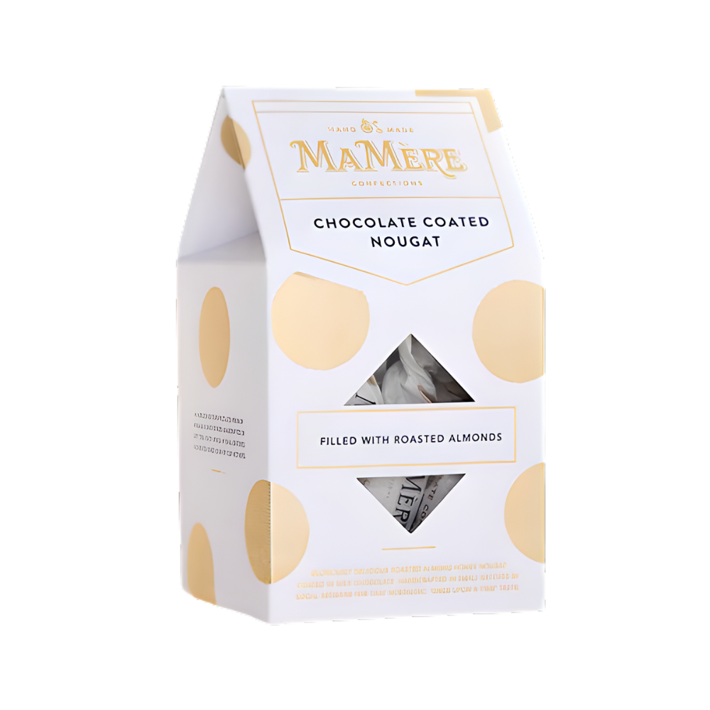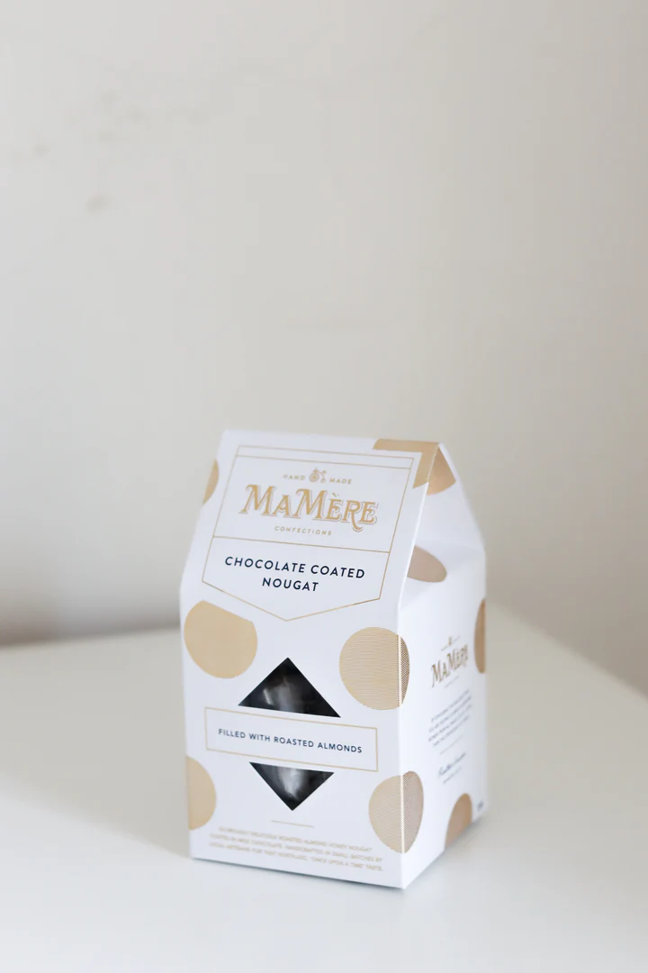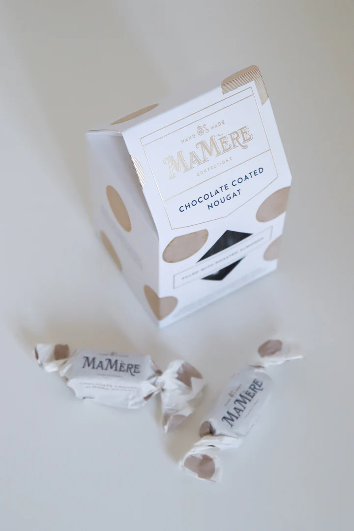 A refined confectionery indulgence from Ma Mere Confections. These luxurious roasted almond nougat bites are coated in smooth chocolate, offering a beautifully balanced sweetness and texture. Each twist is individually wrapped to preserve freshness and elevate the gifting experience.