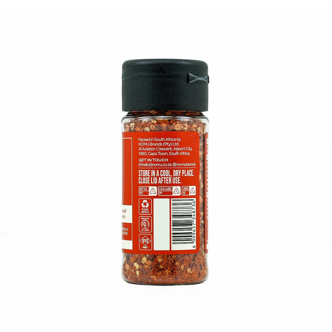 NOMU Chilli Flakes deliver a warm, vibrant heat with a satisfying crunch, perfect for adding both flavour and texture to everyday meals. Shake over pasta, avocado toast, pizza, or stir into sauces and stir‑fries for an instant spicy finish. These versatile flakes bring colour, warmth, and a bold lift to savoury dishes, whether used as a topping, seasoning, or a final flourish.