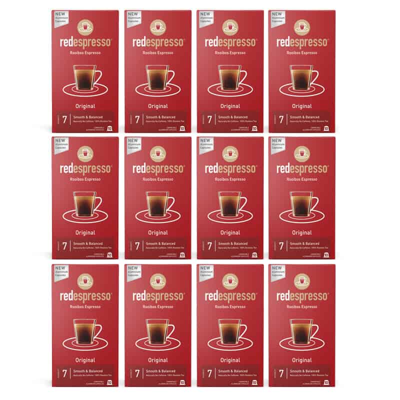 Red Espresso® Original Rooibos Capsules deliver the award‑winning, café‑quality red espresso® experience in a convenient, Nespresso‑compatible format. Made from 100% pure Rooibos tea, these premium aluminium capsules allow you to recreate South Africa’s much‑loved red cappuccino®, red latte®, red lungo, and even refreshing Fresh Red® Iced Tea at home.