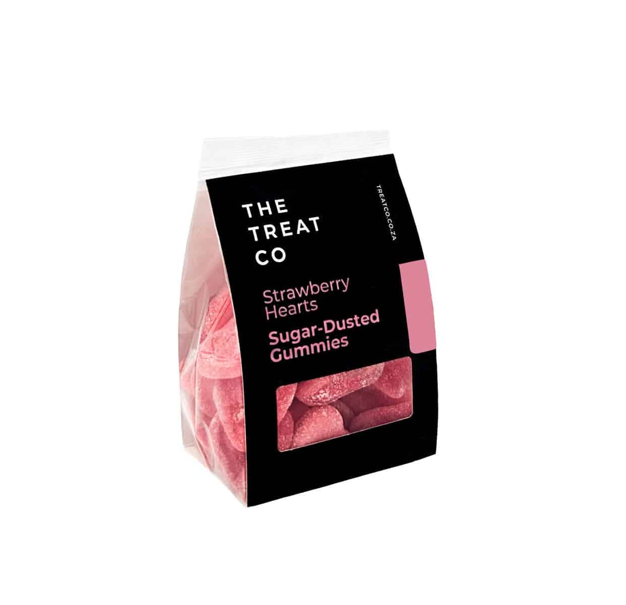 Soft, sugar‑dusted strawberry hearts with a bright zing and a gentle tart edge. Sweet, sharp, and seriously satisfying from The Treat Co