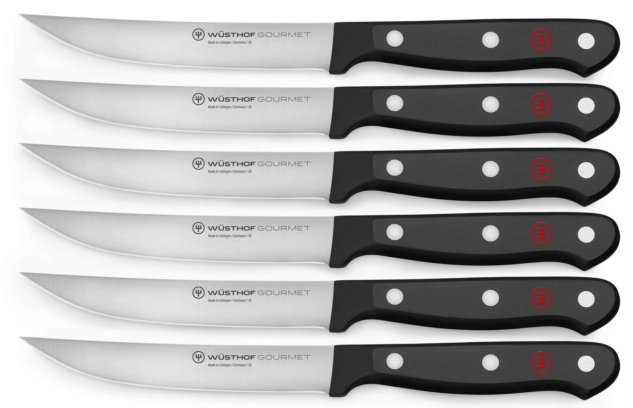 A premium set of six Wüsthof steak knives crafted for smooth, precise slicing. Balanced, durable, and designed to elevate everyday dining or special occasions. Built with Wüsthof’s signature quality and performance